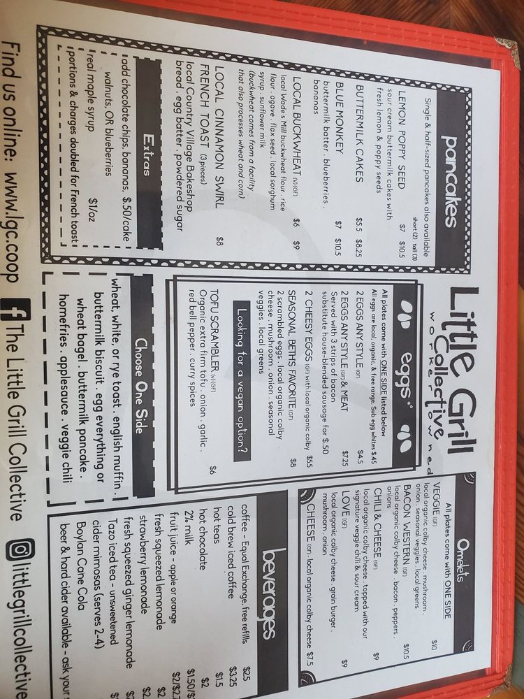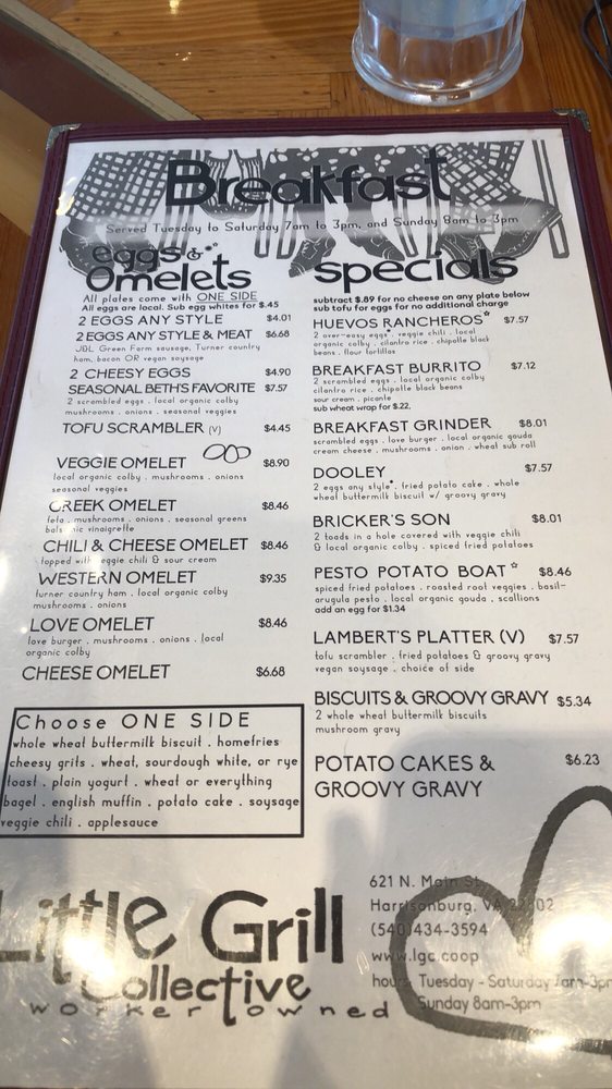 Introducing The Little Grill, a hidden gem in Harrisonburg, VA, specializing in vegan and vegetarian breakfast and brunch options. This hipster, casual spot offers a diverse menu with many vegetarian choices, as well as vegan-friendly dishes. The customer reviews rave about the friendly service, delicious food, and cozy atmosphere. Highlights include blueberry pancakes loaded with fresh blueberries, a Greek omelette, and mouth-watering cinnamon roll pancakes. The seasonal menus keep things exciting, and the hospitable staff ensure a memorable dining experience. With amenities like outdoor seating, free Wi-Fi, and gender-neutral restrooms, The Little Grill is a must-visit for food enthusiasts looking for a unique and satisfying meal.